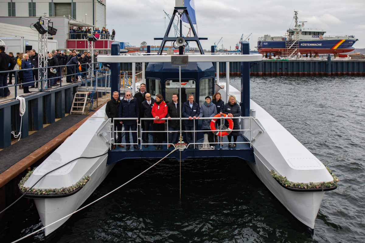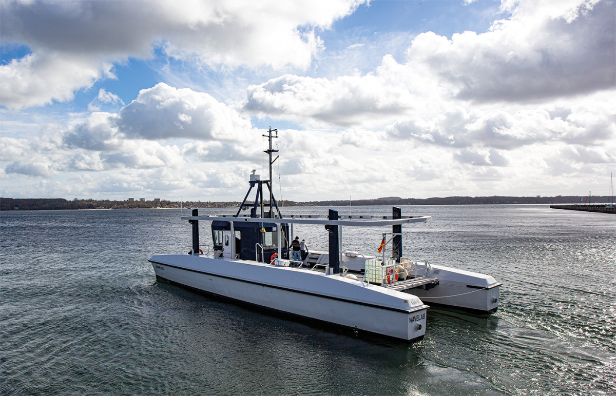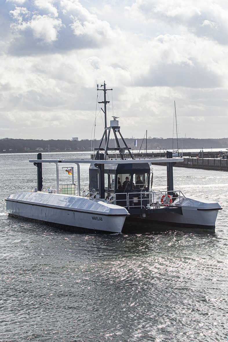 Forschungsschiff „MS Wavelab“ zur Erprobung der vollautomatisierten bzw. autonomen Schifffahrt im Personenverkehr auf der Kieler Förde im Rahmen des Verbundvorhabens „CAPTN Förde Areal I und II“.