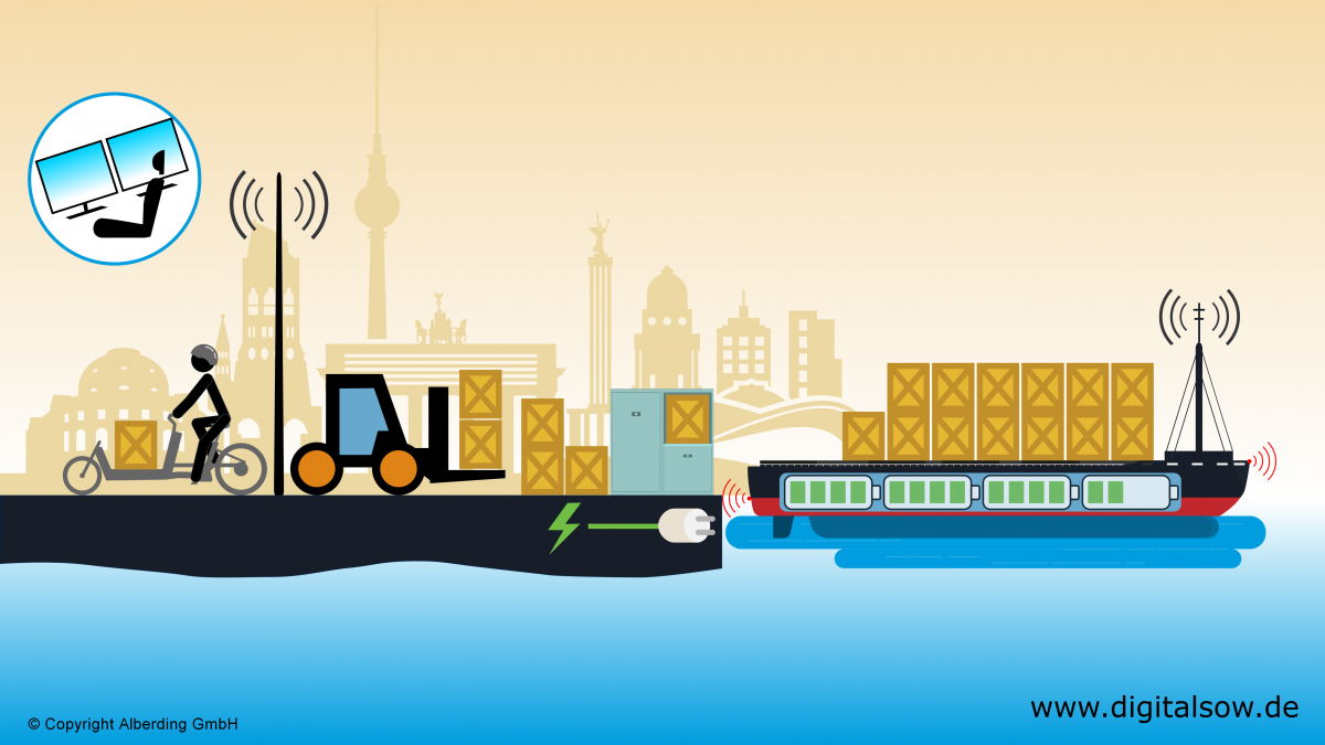 Entwicklungszeitraum 06/2021–06/2024 Koordination Alberding GmbH Themenfelder Automatisierung, Antriebssysteme & Kraftstoffe, Transportlogistik & Umschlagskonzepte Partner Deutsches Zentrum für Luft- und Raumfahrt e.V., Institut für Kommunikation und Navigation; Schiffbau-Versuchsanstalt Potsdam GmbH; Technische Universität Berlin, Fachgebiet Entwurf und Betrieb Maritimer Systeme; Universität Rostock, Institut für Automatisierungstechnik; Verein für europäische Binnenschifffahrt und Wasserstraßen e.V Demonstratortyp Reales & digitales Testfeld, projektbezogen Nutzungskonzept Reiner Forschungsbetrieb (keine gewerbliche Nutzung) Förderprogramm BMV / Förderrichtlinie digitale Testfelder an Bundeswasserstraßen (DTW I) Förderkennzeichen 45DTWV002 Status in Betrieb Untersuchung und praktische Erprobung der Möglichkeiten der Ver- und Entsorgung von Metropolregionen über die Wasserstraße am Beispiel von Berlin. Betrachtung neuer Transport- und Logistikkonzepte, hoch automatisiert fahrender Transportträger mit ökologischen Antrieben, kleiner Containerboxen und neuer Umschlagformen.
